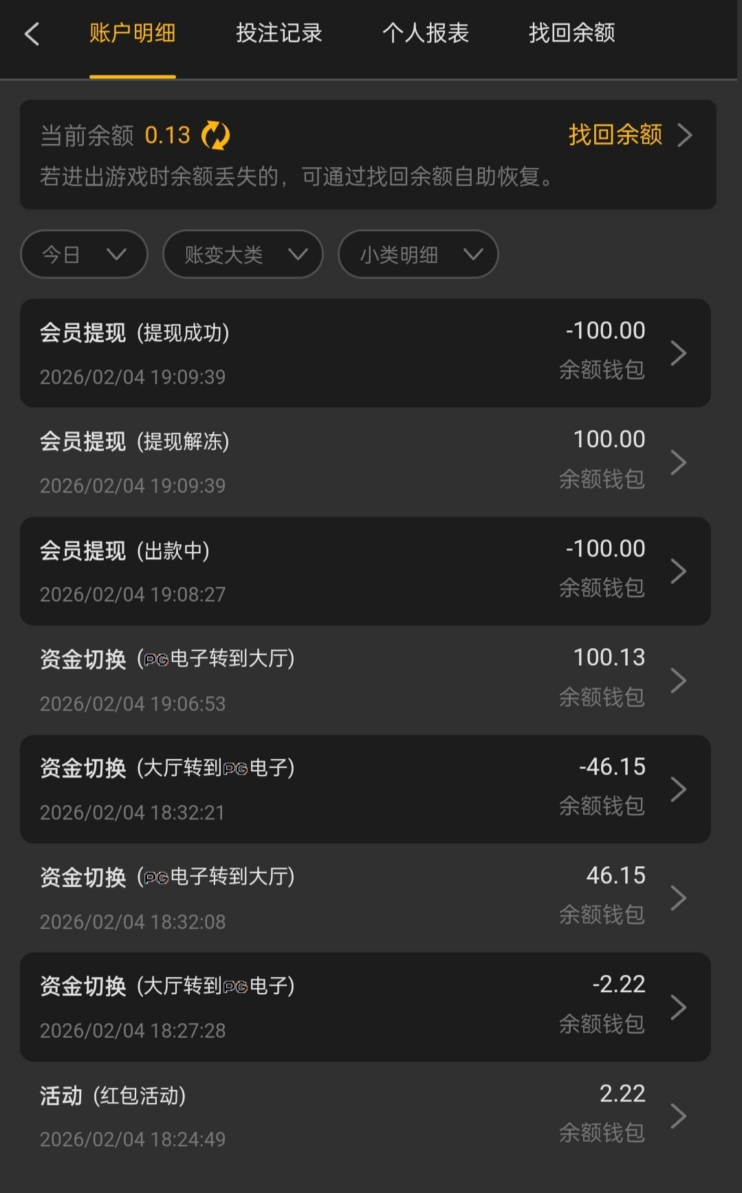 出款情况:自测(